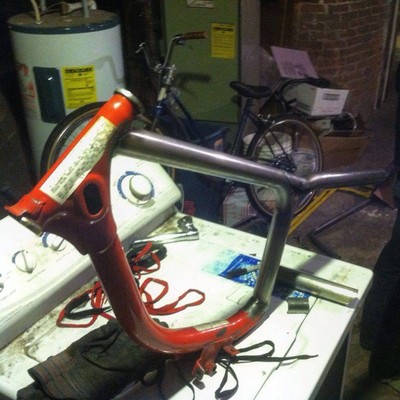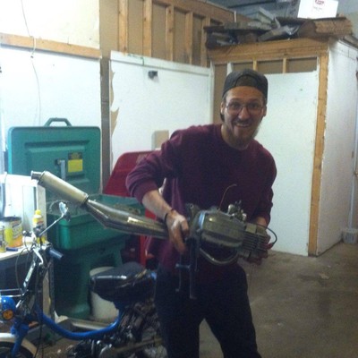 This is a little cafe racer inspired project that I started to build because I was sick and tired of looking at my ex girlfriends ugly qt50 sitting in my garage. So I decided that I was going to chop it up into little bits and put a za50 engine on it that I had acquired through a trade. Then I ditched the gas tank/seat atrocity and was supplied with a cool old batavus tank (thank you Chad Burke)that I plan on converting to a top tank by welding in new gas line bungs so then the fuel wont just settle in one side of the gas tank because of the tunnel and keep the motor from getting fuel.