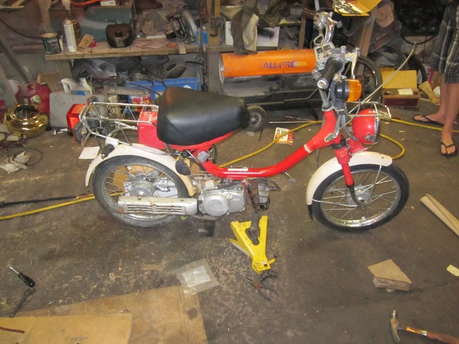 current work in progress updates to come basically bone stock . upgrades on order.........got new carb and tailight on..new reeds are got the techno boss pipe on it the pipe and dual stage reeds really woke up this hopper also got the led blinkers on
