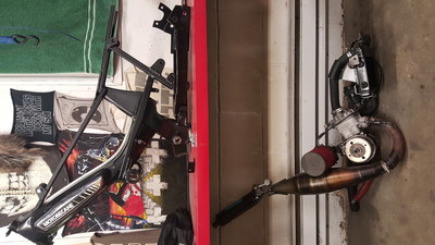 Moped GP 2016 race bike. Rebuilt a new frame since last year. Seating position 2" lower, lines cleaned up.