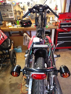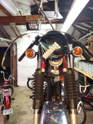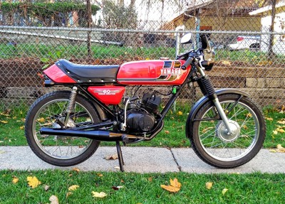 Yamaha rd60 with a gt80 engine. Blk Blk Clip ons, Treats fairing, Puch headlight with Hi-Lo. DT50 Homoet pipe.