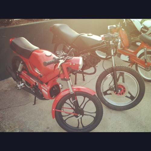 Got a nice clean stock bike. And slowly upgraded what was needed until I was satisfied. Mid 50's all day. Over 3000 miles on the kit and still strong. 80's bear trap BMX pedals. Black 5-way shocks, clubmans, wicked wizards.