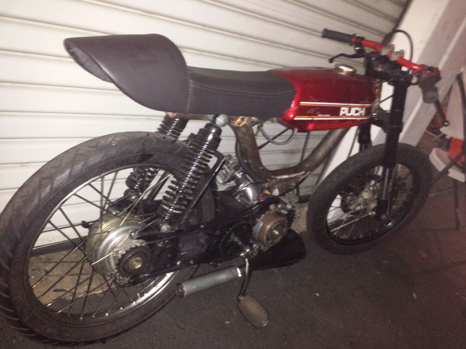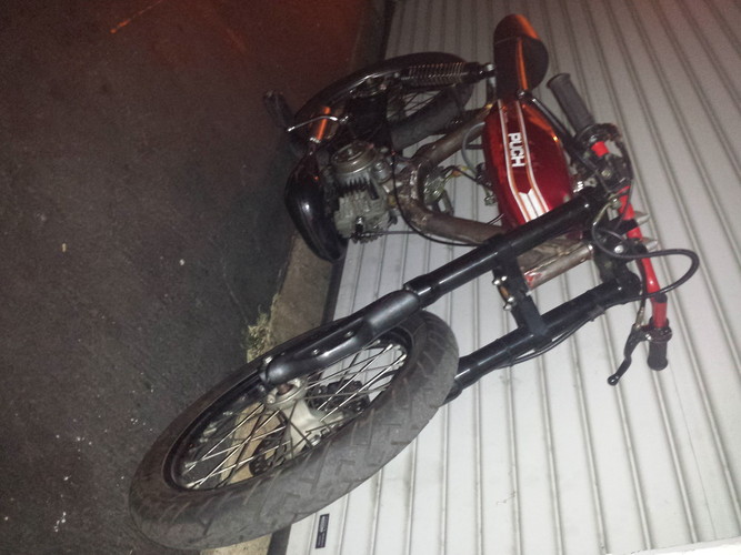 RED ROCKIT By Jacob Martinez · Honda PS50 · 1979 Added Aug 5, 2014 · Updated Aug 5, 2014 ♥ 5 likes ‹ › 1 / 4 × ‹ › Parts engine Honda PA50II Honda 70cc Athena Honda Hobbit Aluminum Stuffed -12mm Pin exhaust Honda Hobbit Camino Proma electrical Honda Hobbit CDI carburetion Mikuni TM 24mm Flatslide Comments (1) CornPed — 11 years, 5 months ago Looks great! how about some more photos? I would like to see more details on your seat cover. Work forks are those? They look super beefy.