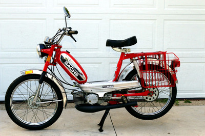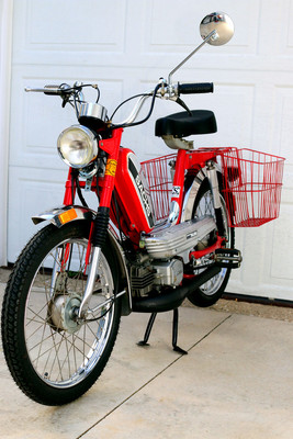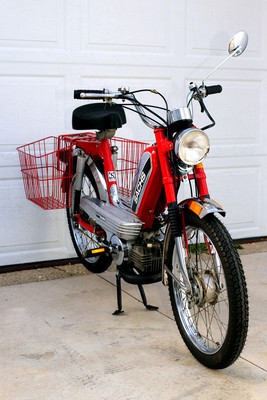 Sat unused for the last 10 years. Fully torn down and rebuilt to stock specs. Now its getting a mild treatment for some minor improvement gains...pipe & carb..that sort of thing. Whats with the name? Turns out rattle can rustolium red is almost a perfect match to the stock paint.