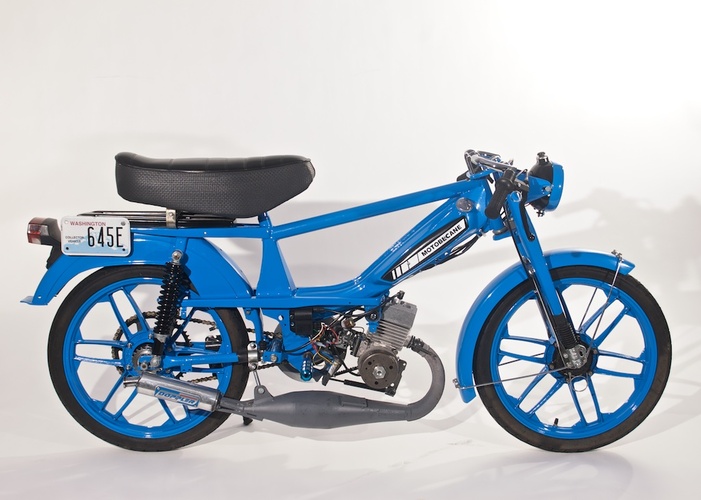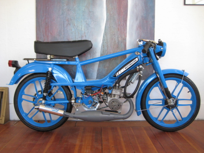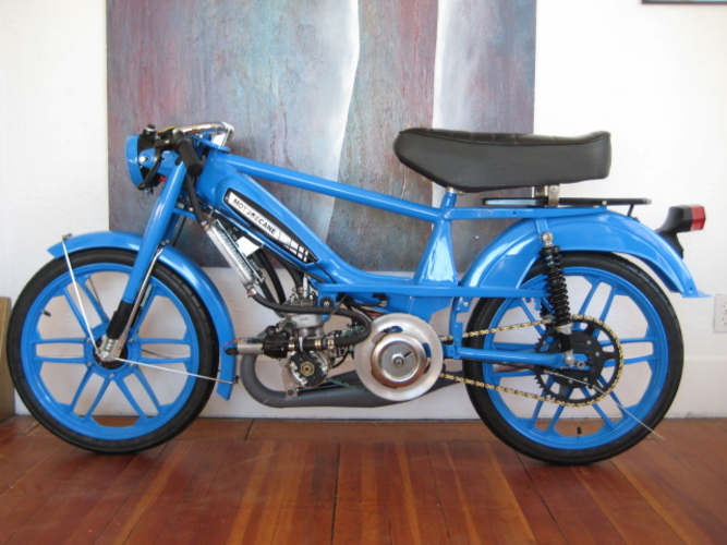 Sacre Blue By Ian Templeton · Motobecane 50V · 1977 Added Sep 17, 2012 · Updated Sep 17, 2012 ♥ 13 likes ‹ › 1 / 6 × ‹ › Daily rider, rally rocket, first moped [[modified]] sex machine LA RESISTANCE Parts carburetion Dellorto 15.15 SHA -Lever Choke engine Motobecane AV10 75cc Airsal MBK AV10 MBK AV10 exhaust Motobecane Ninja Circuit Tuning Main 78 Comments (2) alan noviasky — 12 years, 7 months ago What belt are you using?! Sweet ride!! Margaret Campbell — 13 years, 6 months ago I'm on my way to having something very much like this. Just AV7 70cc airsal instead. If not for a snapped stock crank I'd be riding it right now.