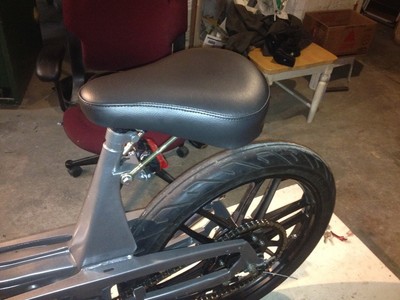 Hey Mike, the seat mod used a puch seat. I took the foam and cut it down. I then used 4 spherical rod ends and 2 connector rods. All hardware was 8mm. Keep the seat clamp from your moby and use it in the puch seat so you can clamp on the seat post. You will have to use washers to take up the slop when you use the moby seat clamp and puch seat. The connecting rods have right hand threads on one end and left hand threads on the other. This allows you to adjust the angle of the seat by just turning the connecting rods. I then have a jam nut to lock each connecting rod in place. You will have to drill 2 holes in the puch seat then drill holes in the brace or luggage rack on the frame. There are 2 styles of puch seats; one has a flat bottom which is useless because it doesn't have the "U" bracket welded to the bottom. the other one has a large u shaped bracket welded to the bottom of the seat. this is the seat you want and this is where you mount the spherical rod ends to.