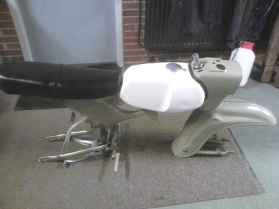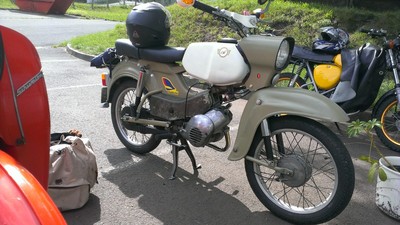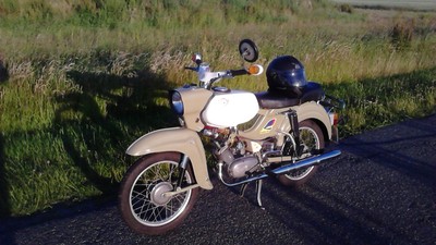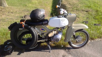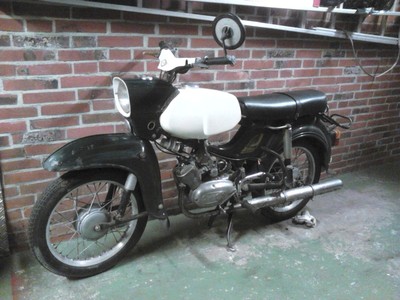 Bought it for a trip me and a friend would make this summer. From Netherland to Berlin, and then trough formal East Germany. I bought it in a mehanical sound condition, but the rest was so so. Sandblasted all the frame parts, spray painted it in the colour closest to original. And then bought all the missing parts. The engine is good as new, with a blue-printed cylinder. The plans are to keep it as original as possible, however gaining some extra speed is always fun.