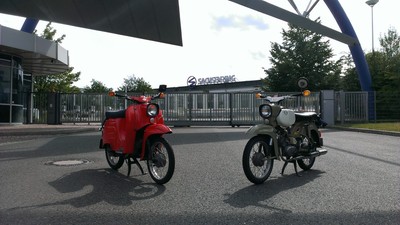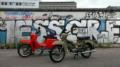 Thanks! But we already finished the trip a few weeks ago, the first two pictures are in front of the Berliner Mauer and the old Trabant factory. Even got the opportunity to complete my moped with original parts from a Simson "dealer" in the old Simson factory.