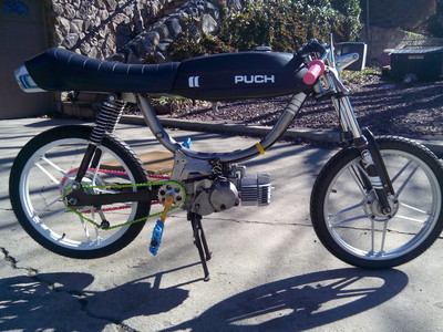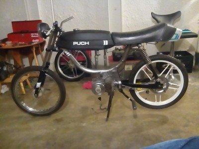 SnD mopeds 78 magnum By andrew forti · Puch Magnum · 1978 Added Oct 28, 2014 · Updated Jul 20, 2017 ♥ 4 likes ‹ › 1 / 23 × ‹ › work in progress.my first build im documenting Parts engine Puch E50 Puch 70cc Airsal -New Fin carburetion Bing 15mm Clone exhaust Puch Estoril Side Bleed with Adjustable End Bleed Comments (5) andrew forti — 9 years, 5 months ago Got some more parts installed. Dragon fruit chain and front wheel andrew forti — 9 years, 11 months ago More parts ordered. andrew forti — 9 years, 11 months ago White five star.new bearings,cleaned up gear,nos puch freewheel off ebay,and a sweet brake plate off a cheap maxi.got my levers and switches too! andrew forti — 10 years ago Got the stock seat and shocks today,five stars are on the way to being done.parts bike tomorrow. andrew forti — 11 years, 5 months ago those ebrs are a bitch to get on