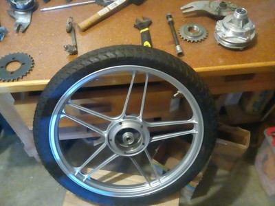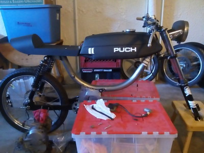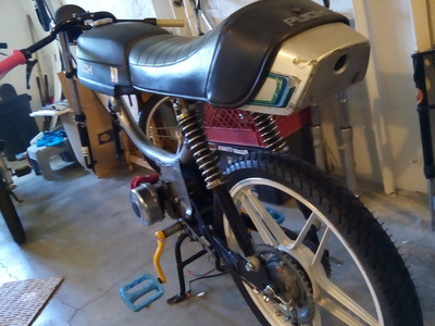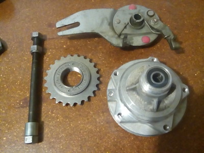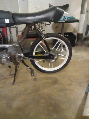 White five star.new bearings,cleaned up gear,nos puch freewheel off ebay,and a sweet brake plate off a cheap maxi.got my levers and switches too!