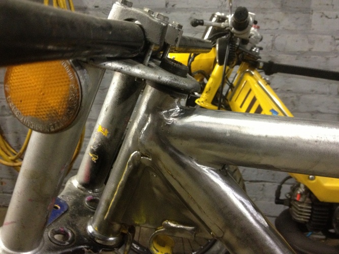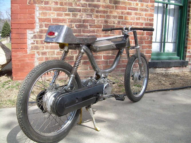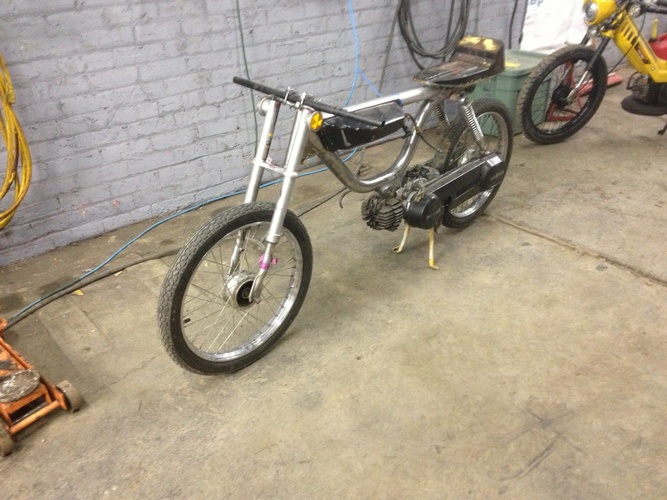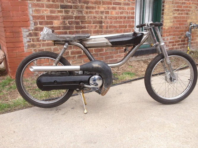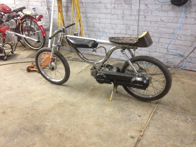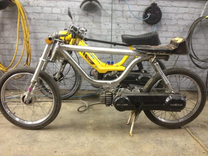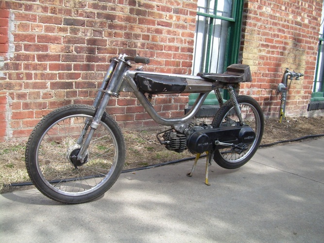 1978 Honda Hobbit moved seat mount,shock mounts and engine mount added top tube to stiffen the frame. I don't know if I gonna mount the tank on the top tube or not . Tell me what you think ??