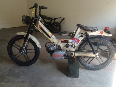 This newport was left for dead, used and abused for years and then i got it and turned it into a speed machine with help from others . The builds powerplant was sold off and then a tomos a3 motor found its way into the garage and somehow ended up on the frame . With a bit of work the a3 had some minor upgrades such as 15.15 carb and mlm intake as well as a techno pipe, but otherwise remained stock . It is a good rider and with a little more work im sure it will be just as unreliable as the other peds i built. Fingers crossed it doesnt blow up . #theswarm
