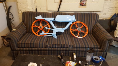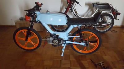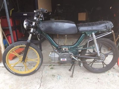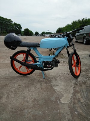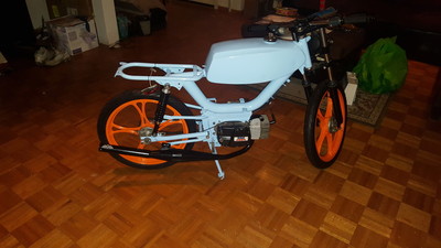 Custom powder coat job by Simon Earley from the ghost Riders in grand rapids michigan m1 sebring with 60cc gila kit worlds nicest reed cage 17mm amal carb mlm intake and people's pipe pietcard ignition gonna be a sweet build
