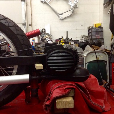 De-rusted the fuel tank, today, and added a light coil to the HPI ignition. Also working on routing all the wires and cables. Should be able to start it for the first time this week! Picking the last few nits before taking it all apart, again, for paint and polish.