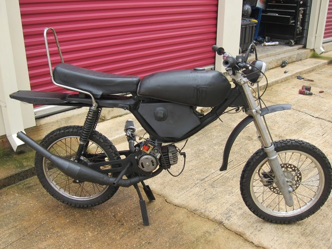 I built this bike to ride with a team of moped enthusiasts to be the first to navigate the Trans-America Trail, a 5000 mile all off-road trail