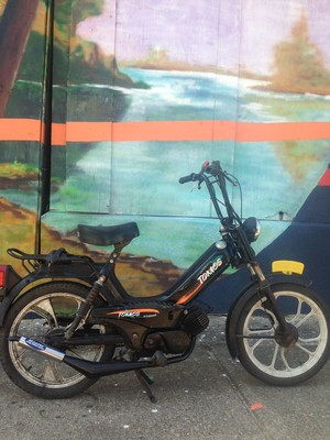 This is basically just a stock tomos that was a mother fucking bitch to work out. I got it for the a35 that's on the allstate, then built this a3 outta some spare parts just to get this running again. I'd intended to actually build it, but I wound up selling it just a few days after I got it running, without even posting it for sale. So, not a build but on here to keep track of my quivver. I did rebuild the motor though, so more work than some "builds" even still. The pipe's actually a "master racing" it's like a smaller bullet chamber.