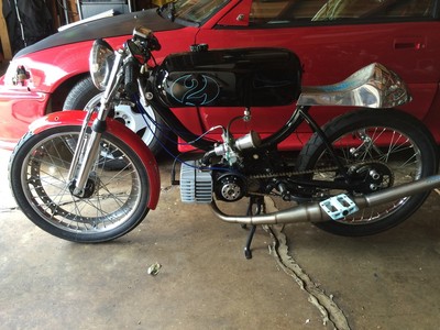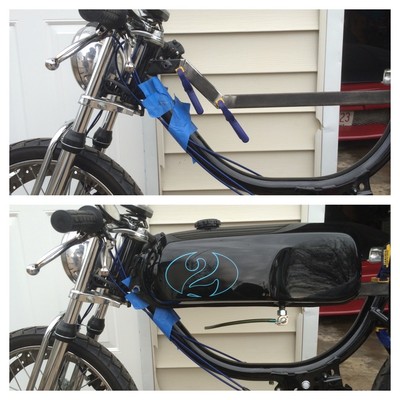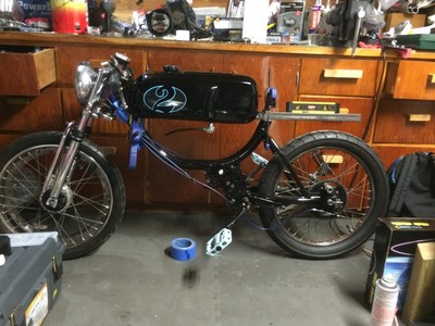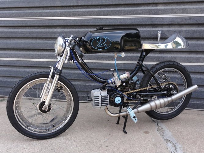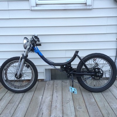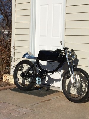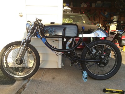 This is my cafe inspired build from a few years ago. It was my first real build. This was my first attempt at making a full aluminum seat. I also did all the welding, fabricating, and painting of this beast. Also, it took about 9 months to build, the same time it took to grown twins. Who knew right?