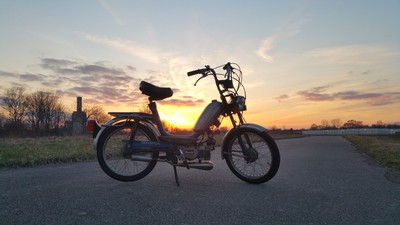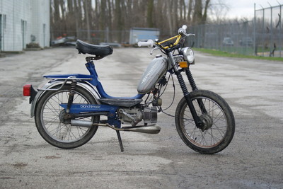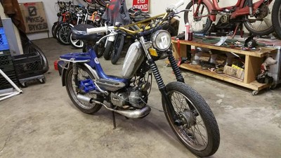 I got this bike from Ben Schulz in a trade. I gave him a badass gaming laptop, and he gave me this dope moped, I think things worked out here. Ben *DOES* have a post of this bike and what he did to it. He did a lot, he built the motor with the Polini Morini 65cc kit, did the Pietcard CDI conversion, gaskets, pipe, carb, tuning, tires probably wayyy more than I even know. I've got a new post for the bike, because I've done some stuff to it myself at this point and will keep on doing things to it. So far, I've put new Tomos Dirtbike forks on it, gold Fly bars and grips, some minor tuning, and I've stripped the side covers for some painting. Ive replaced the the reeds and reed block with the set that comes with the Polini M01 reed kit originally - they've been great so far, but i dont expect them to last very long. This bike is really great, and a really awesome track rat - I've put about 12 hrs on the Zeros track with this thing. I've also been taking it to rallies this season - this thing was awesome at the Swoops rally in Atlanta this year. It's also excellent for around town trips too. It is probably the most well rounded bike I have running right now.