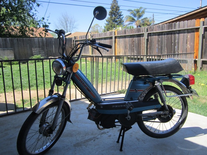 Stock Moped. found in the backyard of my Dads friend. He was going to throw away. so I ask if i could have it. I only had to buy the Seals and the Piston rings and the moped runs ok. I'm Trying to get a better engine for it so i can climb the hills with no problems.