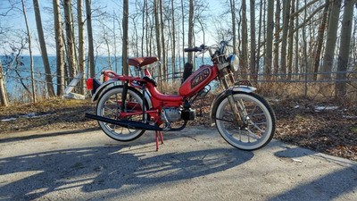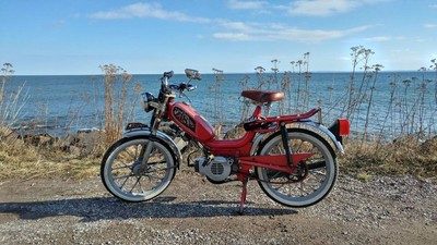 1978 Gadabout - Rockin' and Rollin. White walls for days, Sebac classic shocks... smoooth brother. 45mph on Polini 80, 15SHA , 38 tooth rear, giganto brn 47mm head re-squished for polini.