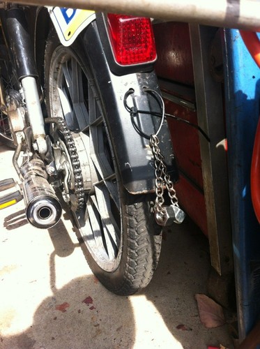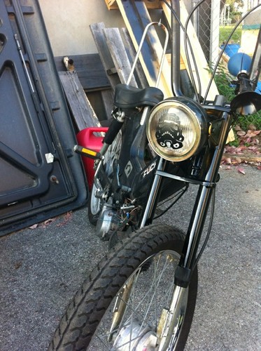 This is our loaner bike. We built this thing using parts that we took off of all our other peds. Custom sissy bar and truck nuts fabricated by Jake Kok. Does 20 mph.