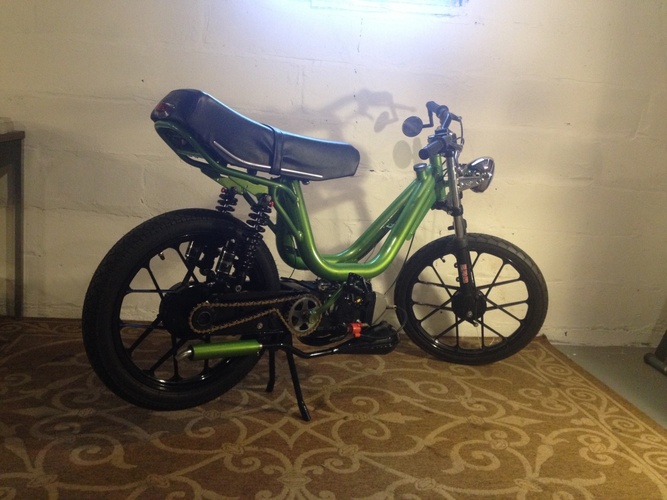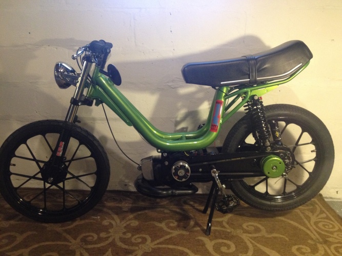 This bike has gone through a rebirth of sorts. Including a full malossi reed valve build with a 19phbg and simonini calibrata, malossi race gears, and hydraulic suspension.