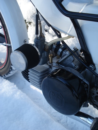 Rebuild this bike a couple of years ago. Drives lovely with this engine. Malossi reed valve @ engine case with an 70cc airsal and a simple 15 bing carb. Still changing things! Greetings from the Netherlands!
