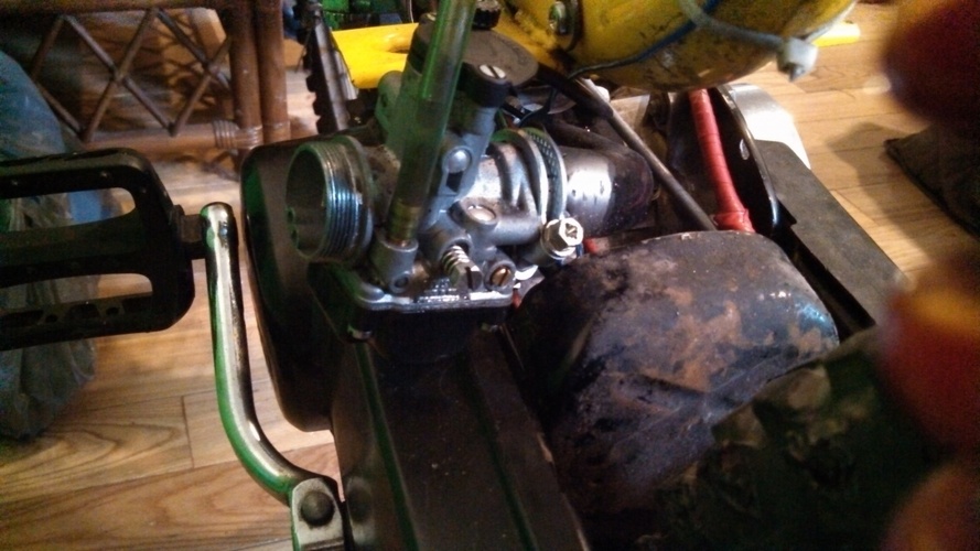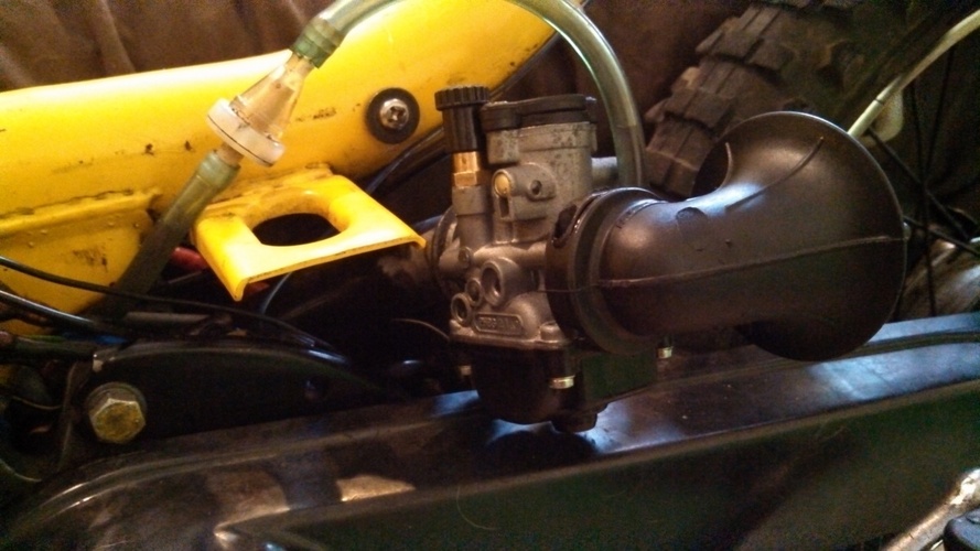 whats your top speed in this? I have what looks like the same setup and can't break 38mph, do you know what i might be doing wrong? Do you have trouble with fuel not feeding to the carb with it sticking out like that? I have to bleed my line each time in order for it to start.