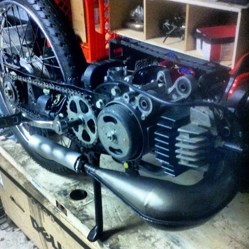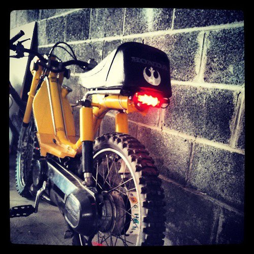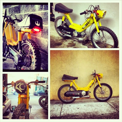 Badass Hobbit on road or off road. Destorys anything in its path and eats city roads for breakfast. Story behind this bike is that it was put in a fridge box and shipped from Solvania to the U.S. back in the 80's where it sat in a basement untill i brought it back to live and gave it some attitude. Now its my everyday driver and never leaves me stranded.