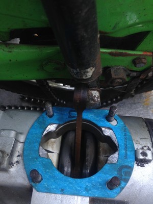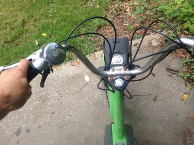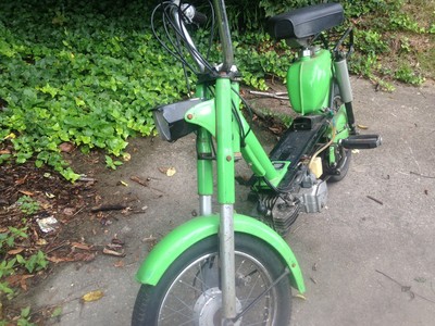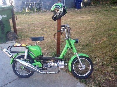 Had to regear enormously and the gearing's still way too low. It's got the puch/moby/peugeot style rear sprockets and the smallest available is the 35 that's on it. Gotta get a 13 up front next.