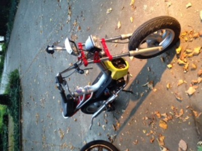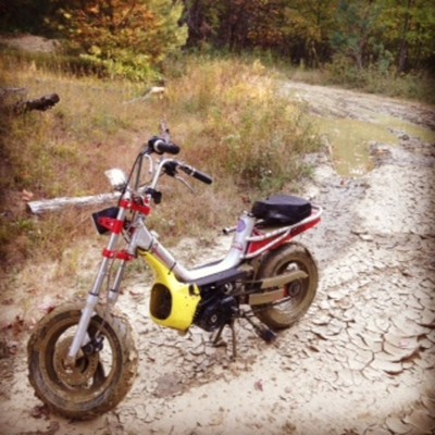 it also had the stock carb, janky intake and a stock-ish sachs pipe hck welded on with a custom dangle puffer