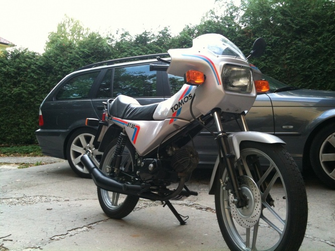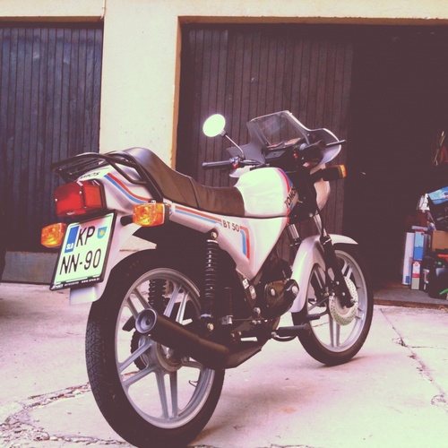 A 1986 Tomos BT 50, 5-speed gearbox, good as new, all stock. Top speed about 85 km/h. Was only sold in Europe, the engine is stock tomos manual shifting engine, sold in the UK under the name AT 50 but BT 50 is a more powerful version.