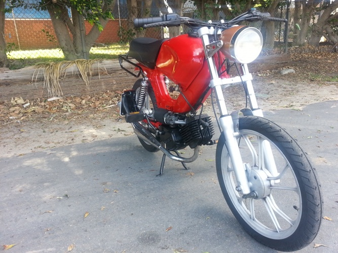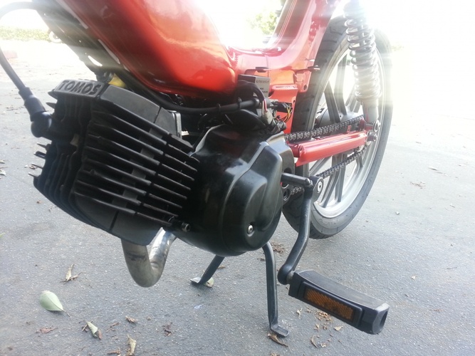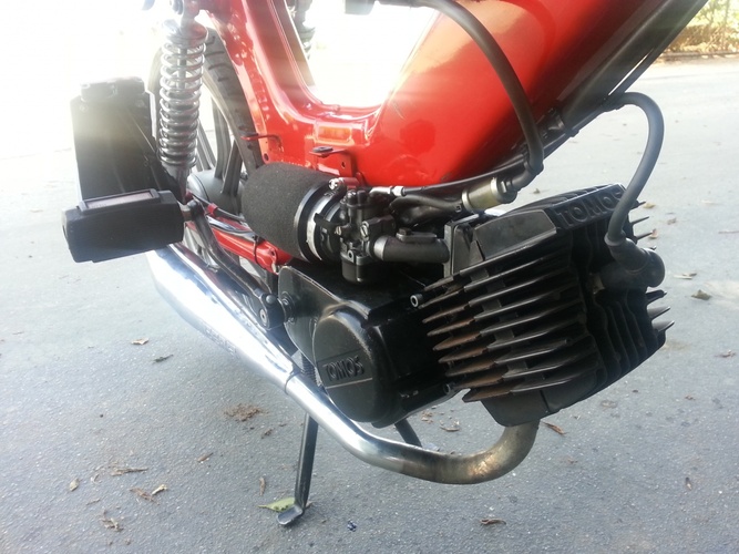Fixed this guy up after a previous shop kept screwing the customer over. They forgot to put a head gasket in and had it jetted to rich. Its a fun ride very smooth. I put some doppler reeds in to replace stock reeds and replaced the gaskets and oil. Also got rid of the oil injection and sheaded weight off of it by getting rid of fenders and covers. Tomos is the way to go for reliablity.