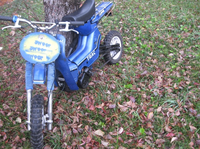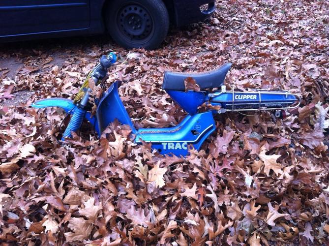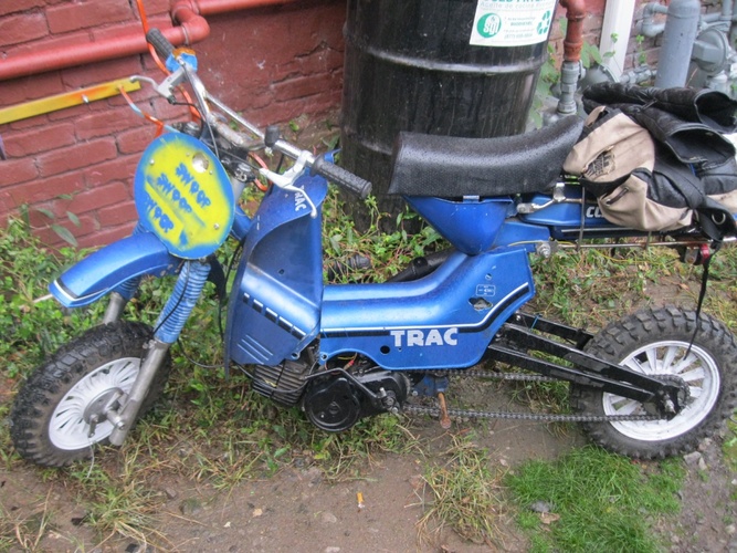 I put some old tomos 16's on, and the legshieilds etc, and Tracy v1 RATATRAC doodoo pile RAt bike fun was born