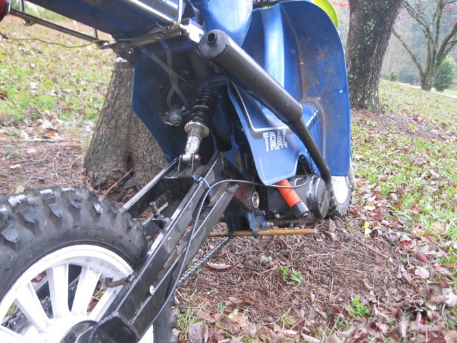 the Bottom mounts on the Trac match the a35 perfectly, so chain alignments easy peasy. it just needed top bolt hangers - i just welded in a few simple tabs.