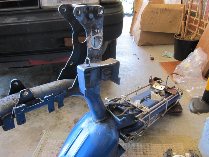 So I cut out the mounts to fit and slid her in there in place of the boring old swingarm