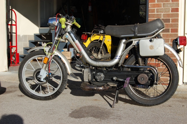 Wrought from the jaws of craigslist for $75... this Vespa grande has been franken'd back to life. Geared low, variates late - it's setup for hauling my girl and I up and around the hills of UT Knoxville's campus. Top GPS speed of 52mph with stock gearing. Subframe reinforced for the end of the world and disk brake front end added for stoppies allllll day.