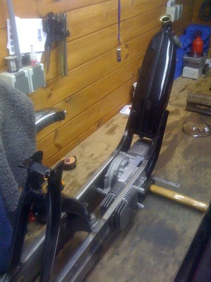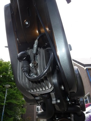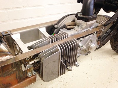 Sven made a custom scoop for the engine cover. Undearneath this scoop lies a 12V computer cooling fan, which will be run off a small 12V battery tucked away in the engine cradle.