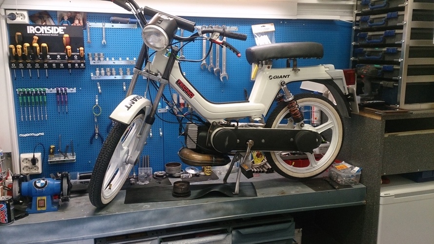 This is a vespa si from 1983.its registratet and Running vell. This noe are no rockets, so the engine are a 46,3 mm malossi,13mm carb with 74 jet. Exhaust is from technosystem. The engine is atlmost perfect and have a lots of power, the only problem left, is to get more speed...