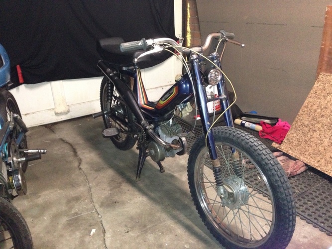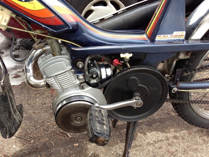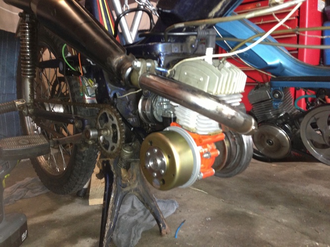 1978 50vlx with a airsal 70cc kit, dellorto 15.15 , treats expansion chamber,and malossi shorty intake.