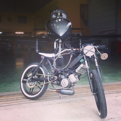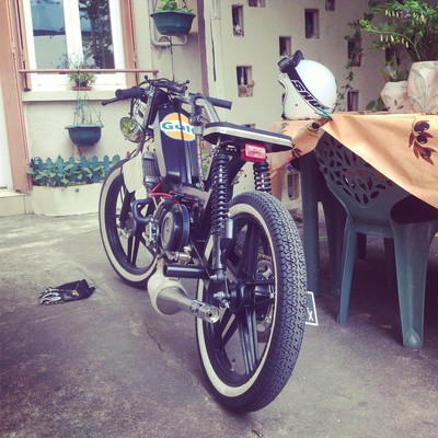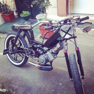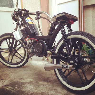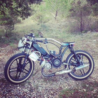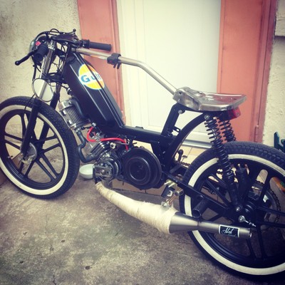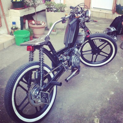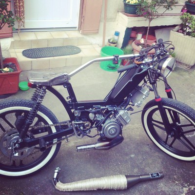 Then... EBR hydraulic front forks (black edition), alsil pipe > doppler ER1 pipe, variotop malossi vario, 17,5 PHBG carb, stock modified case, polini 65 cc LC cylinder, karting airbox... Always continu to upgrade my project...