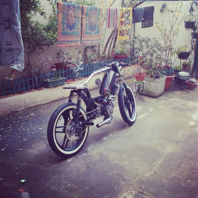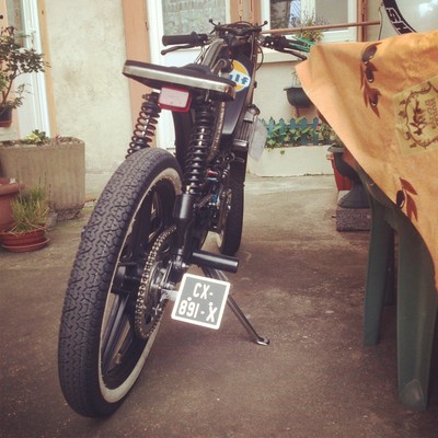 At the beggining (first rides) config was stock engine, 15SHA carb, stock vario, stock pipe and stock front forks.