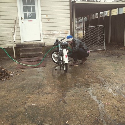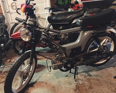 I bought this bike after it had been sitting for over 2 years. The frame support was beautifully welded in by the previous owner, and gives it a unique silhouette that I love. I'm sorting through carb, gaskets, cleaning the tank etc. to get it on the road. The Korado 3 spoke wheels look excellent, and since that's all people comment on they became the namesake of the bike.