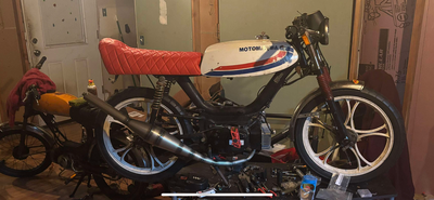 Has 65cc morini metra kit custom crank pipe 19mm moped factory intake worlds greatest reed block 19 polini cp carb