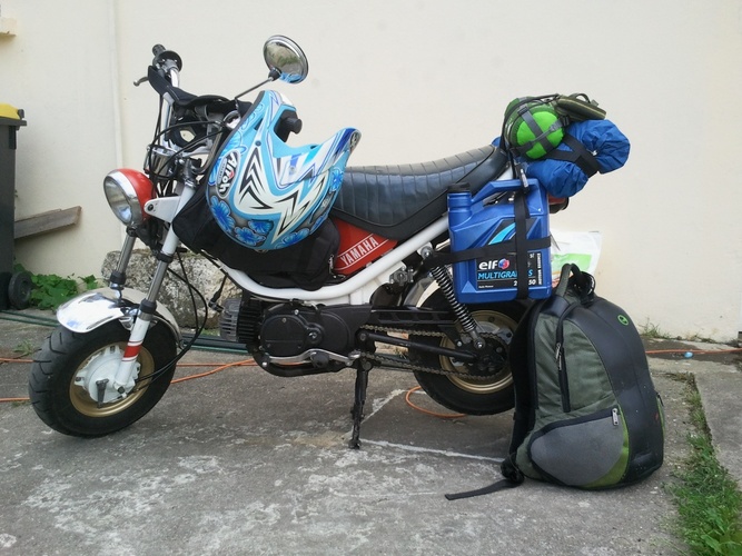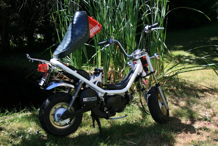 1977 Chappy 50 type 543 - Swiss model with manual gearbox 4 speed, mono-seat with rear opening, no pedals, thin frame with 2.8L fuel tank, three lights modes, 72cc like exhaust and sprokets (15x28).