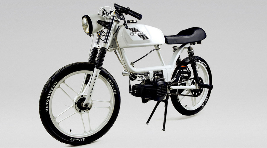 This bike was commissioned by a customer, who asked us for a clean, custom bike with maximum attention to detail. The donor bike was rough and missing an engine. We streamlined the frame—removing all unnecessary mounts and brackets. Next, we upgraded the suspension, sourced a new engine and rebuilt it with our standard performance package. The seat was reshaped for a lower profile and reupholstered in quality black leather. The customer requested a halo-style headlight popular in luxury cars, so we custom fit BMW parts into a new bullet headlight. Hand-lettered Hutchinson tires and custom designed General decals round out this super clean build.